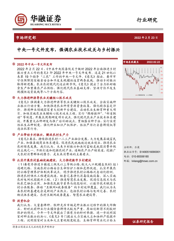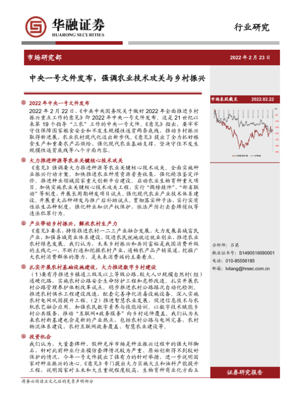 【华融证券】【20220223】20220223-华融证券-农林牧渔行业:中央一号文件发布,强调农业技术攻关与乡村振兴-3页