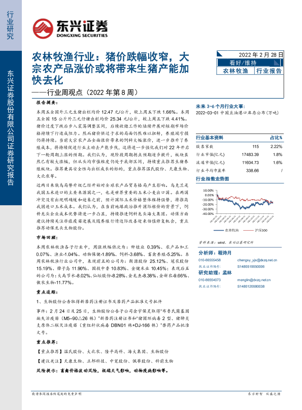 【东兴证券】【20220228】农林牧渔行业周观点(2022年第8周):猪价跌幅收窄,大宗农产品涨价或将带生猪产能加去化-13页