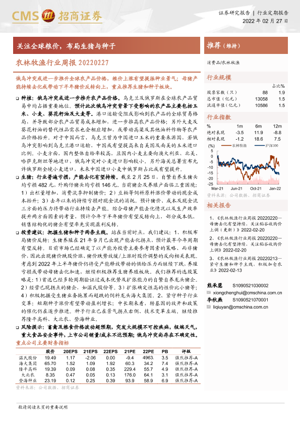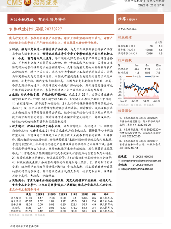 【海通证券】【20220227】农林牧渔行业周报:关注全球粮价,布局生猪与种子-13页