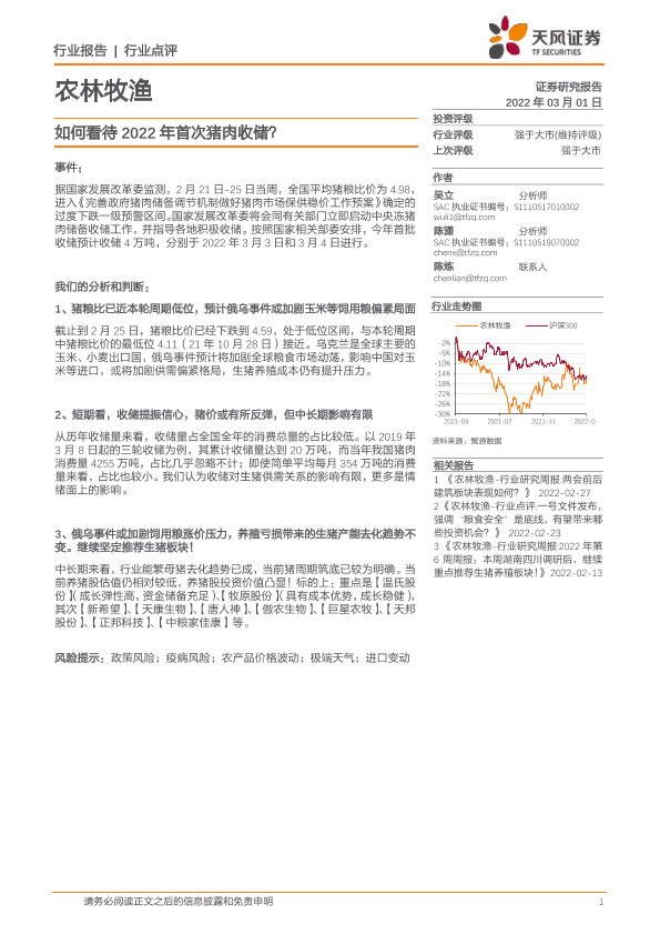 【天风证券】【20220301】如何看待2022年首次猪肉收储?-2页