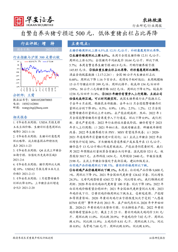 【华安证券】【20220227】20220227-华安证券-农林牧渔行业周报:自繁自养头猪亏损近500元,低体重猪出栏占比再降-55页