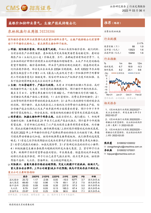 【海通证券】【20220306】农林牧渔行业周报:高粮价加持种业景气,生猪产能或持续去化-11页
