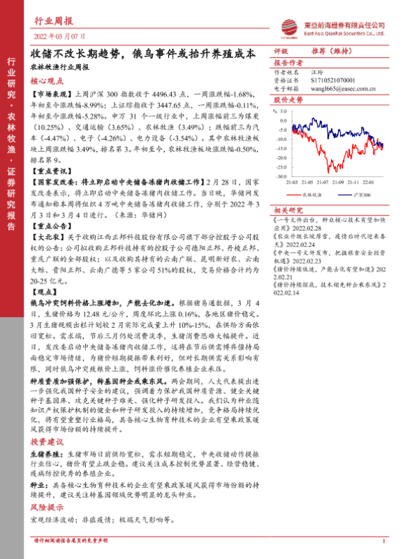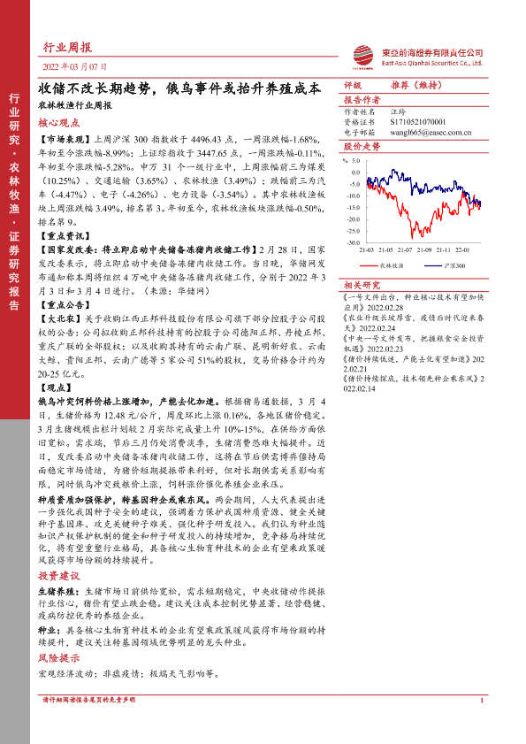 【东亚前海证券】【20220307】20220307-东亚前海证券-农林牧渔行业周报:收储不改长期趋势,俄乌事件或抬升养殖成本-17页
