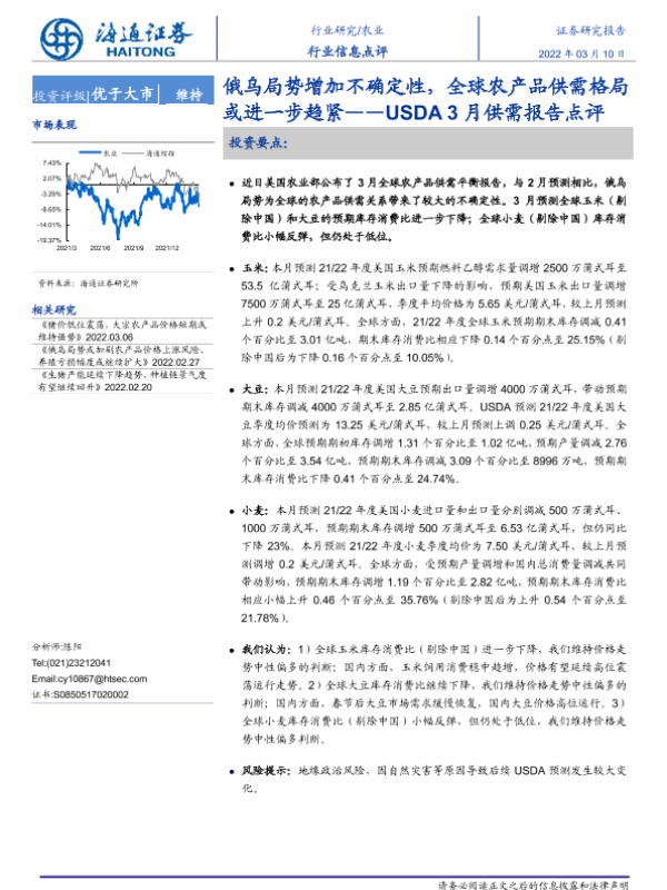 【海通证券】【20220310】农业USDA3月供需报告点评:俄乌局势增加不确定性,全球农产品供需格局或进一步趋紧-5页