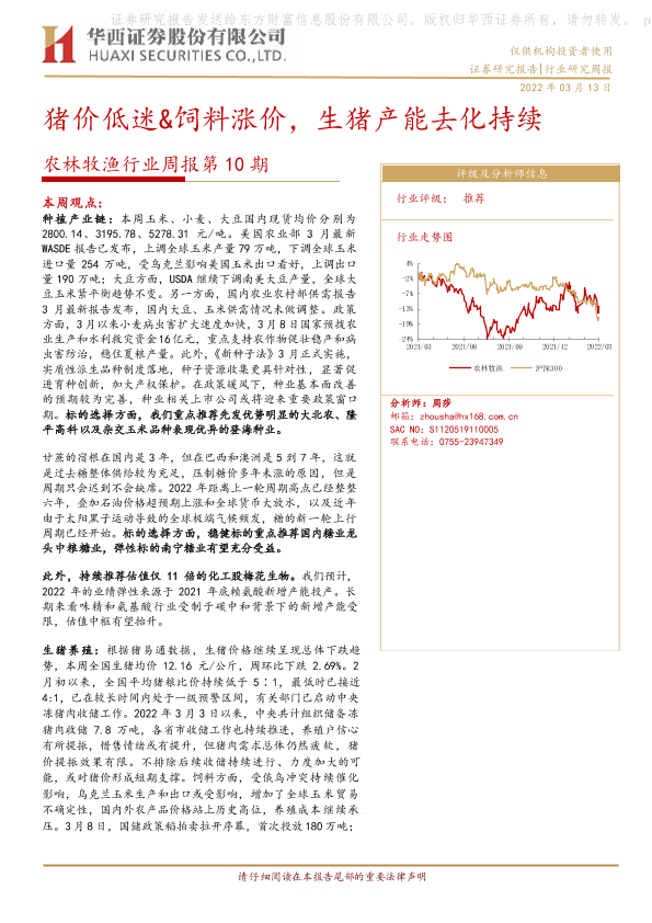 【华西证券】【20220313】农林牧渔行业周报第10期:猪价低迷&饲料涨价,生猪产能去化持续-23页