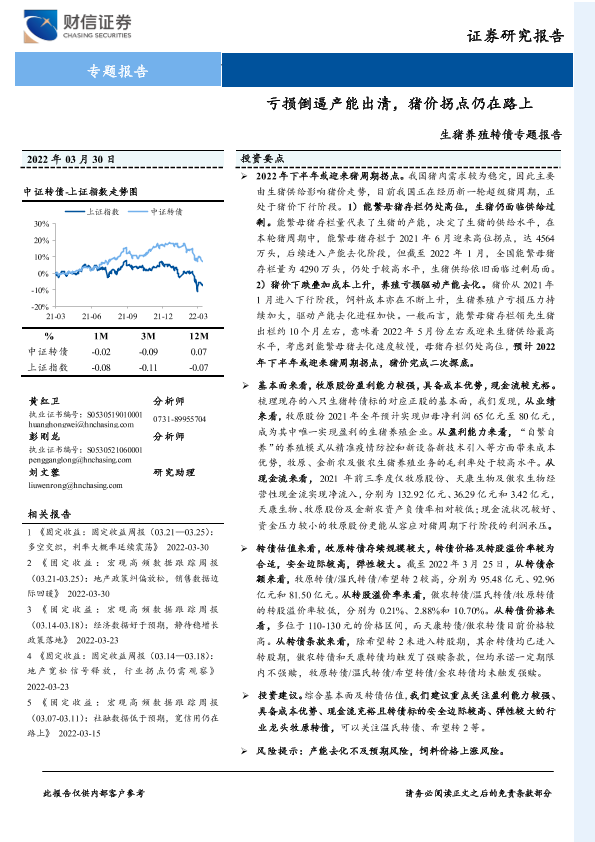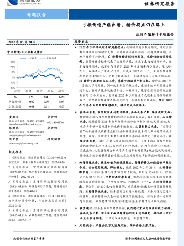 【财信证券】【20220330】20220330-财信证券-生猪养殖转债专题报告:亏损倒逼产能出清,猪价拐点仍在路上-34页