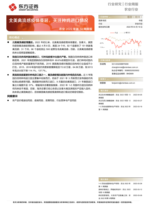 【东方证券】【20220410】农业2022年第14周周报:北美禽流感疫情蔓延,关注种鸡进口情况-8页