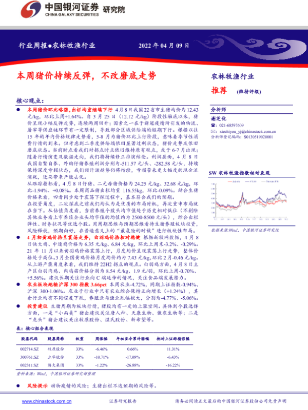 【银河证券】【20220409】20220409-中国银河-农林牧渔行业周报:本周猪价持续反弹,不改磨底走势-18页