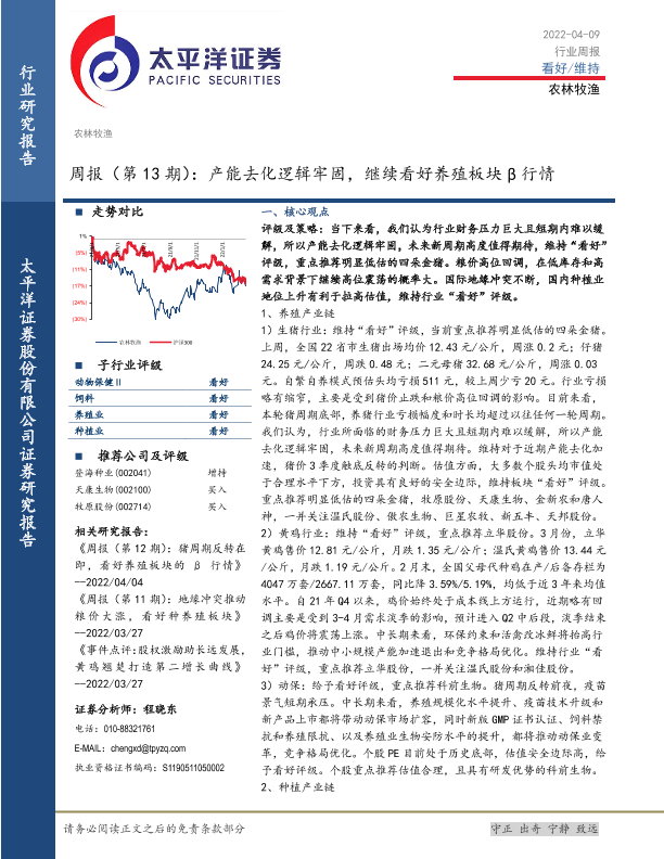 【太平洋证券】【20220409】20220409-太平洋-农林牧渔周报(第13期):产能去化逻辑牢固,继续看好养殖板块β行情-16页