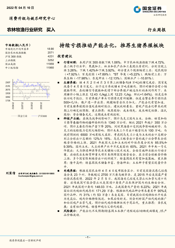 【国金证券】【20220410】20220410-国金证券-农林牧渔行业研究:持续亏损推动产能去化,推荐生猪养殖板块-14页