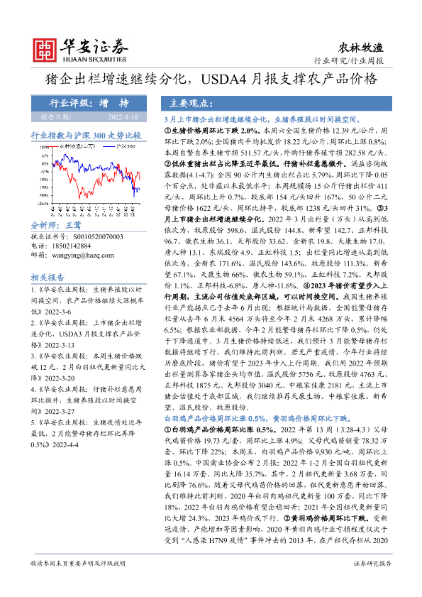 【华安证券】【20220410】20220410-华安证券-农林牧渔行业周报:猪企出栏增速继续分化,USDA4月报支撑农产品价格-43页