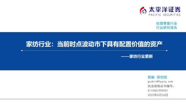 【太平洋证券】【20220526】家纺行业更新:当前时点波动市下具有配置价值的资产-20页