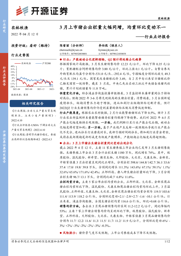 【开源证券】【20220412】3月上市猪企出栏量大幅同增,均重环比变动不一-12页