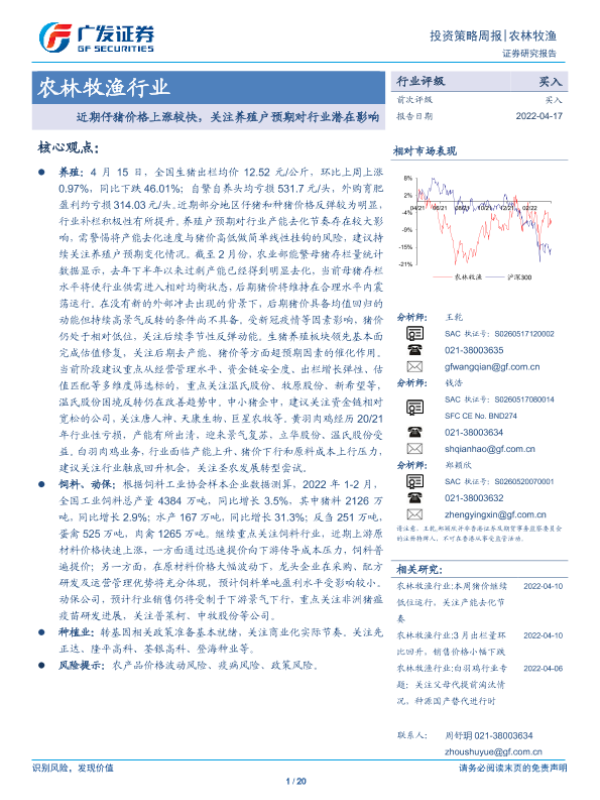 【广发证券】【20220417】20220417-广发证券-农林牧渔行业投资策略周报:近期仔猪价格上涨较快,关注养殖户预期对行业潜在影响-20页