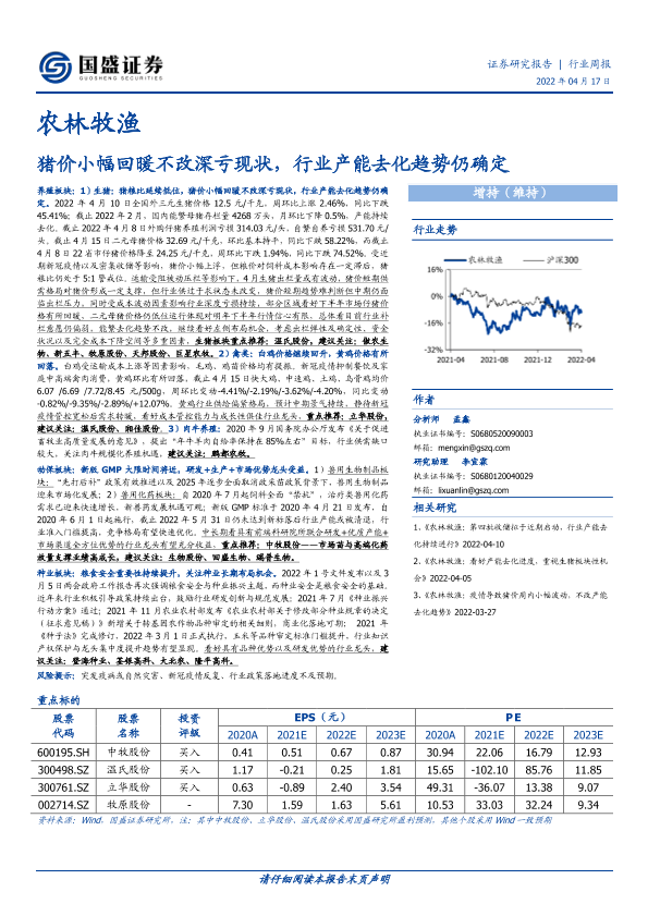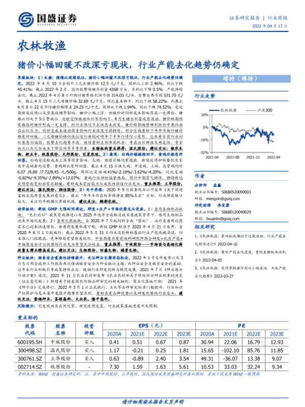 【国盛证券】【20220417】20220417-国盛证券-农林牧渔行业周报:猪价小幅回暖不改深亏现状,行业产能去化趋势仍确定-17页