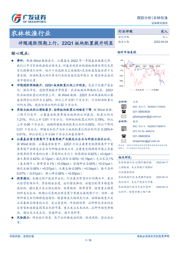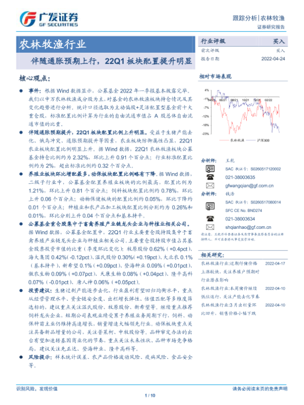 【广发证券】【20220424】20220424-广发证券-农林牧渔行业:伴随通胀预期上行,22Q1板块配置提升明显-10页