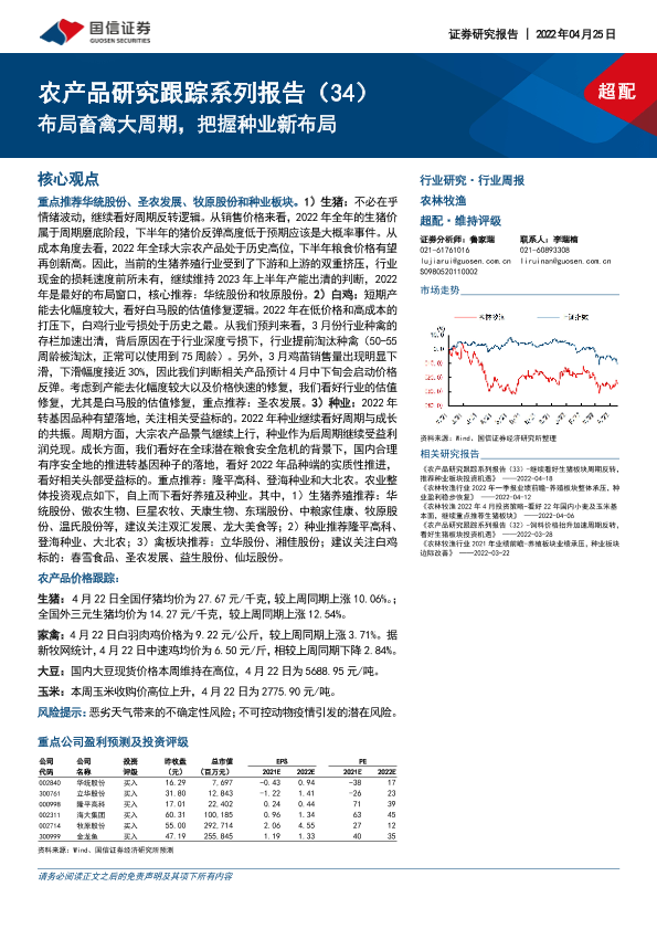 【国信证券】【20220425】20220425-国信证券-农产品研究跟踪系列报告(34):布局畜禽大周期,把握种业新布局-23页