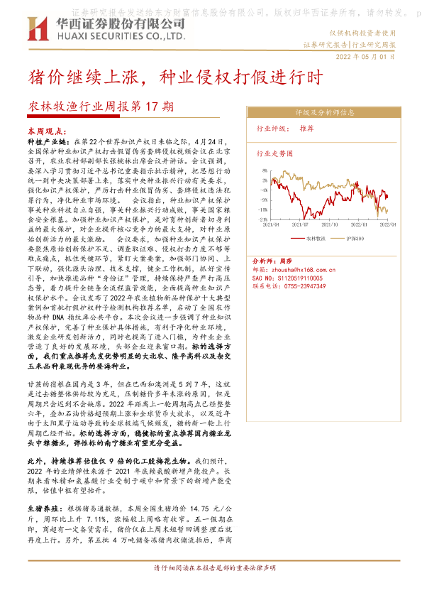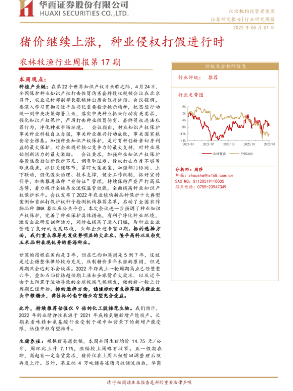 【华西证券】【20220501】农林牧渔行业周报第17期:猪价继续上涨,种业侵权打假进行时-23页
