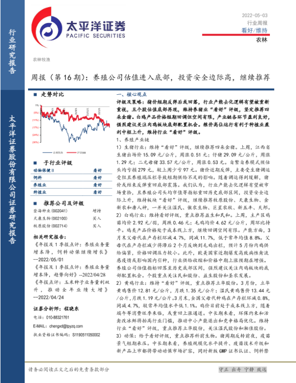 【太平洋证券】【20220503】20220503-太平洋-农林周报(第16期):养殖公司估值进入底部,投资安全边际高,继续推荐-16页