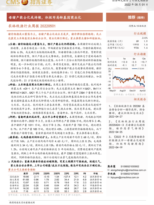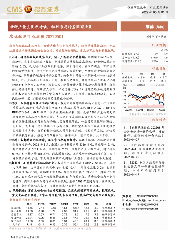 【海通证券】【20220501】农林牧渔行业周报:母猪产能去化或持续,积极布局转基因商业化-12页