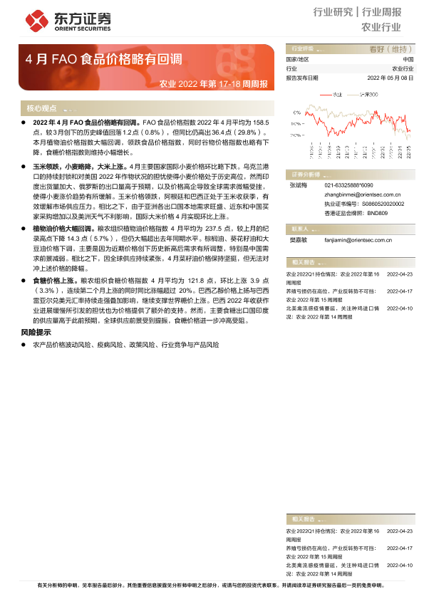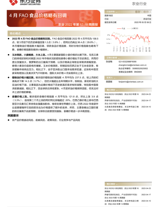 【东方证券】【20220508】农业2022年第17-18周周报:4月FAO食品价格略有回调-9页