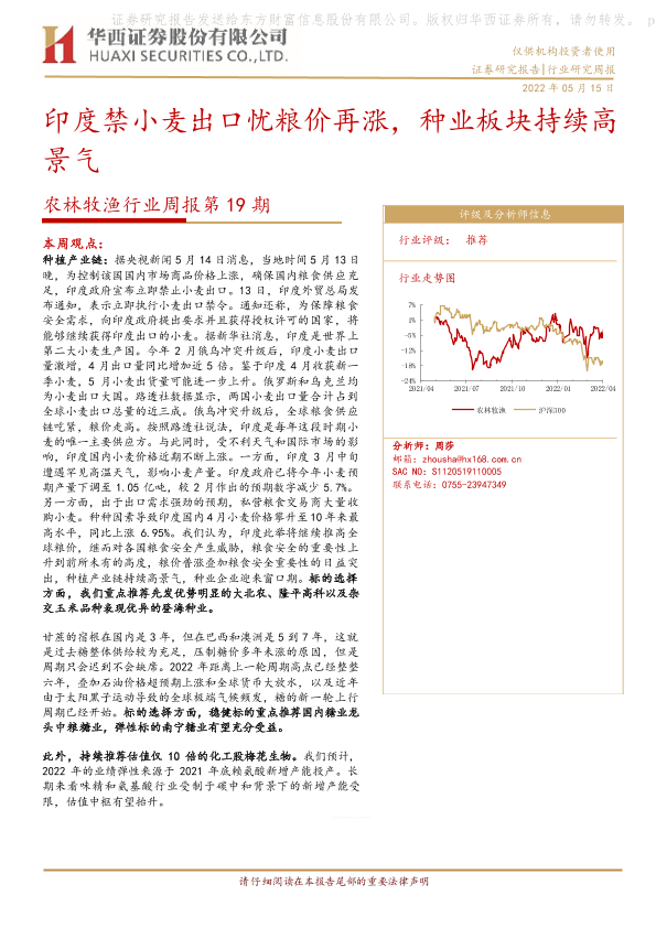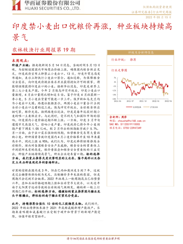 【华西证券】【20220515】农林牧渔行业周报第19期:印度禁小麦出口忧粮价再涨,种业板块持续高景气-26页