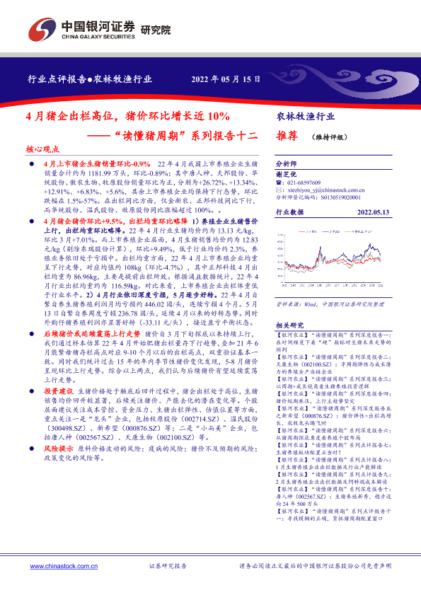 【银河证券】【20220515】4月猪企出栏高位,猪价环比增长近10%-8页