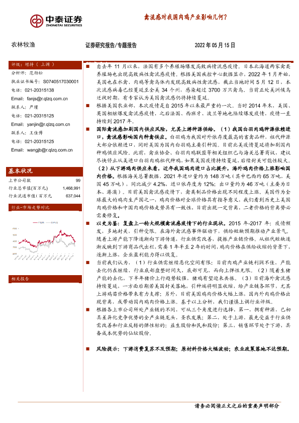 价格走势 供应链风险 禽流感 肉鸡产业 进出口影响