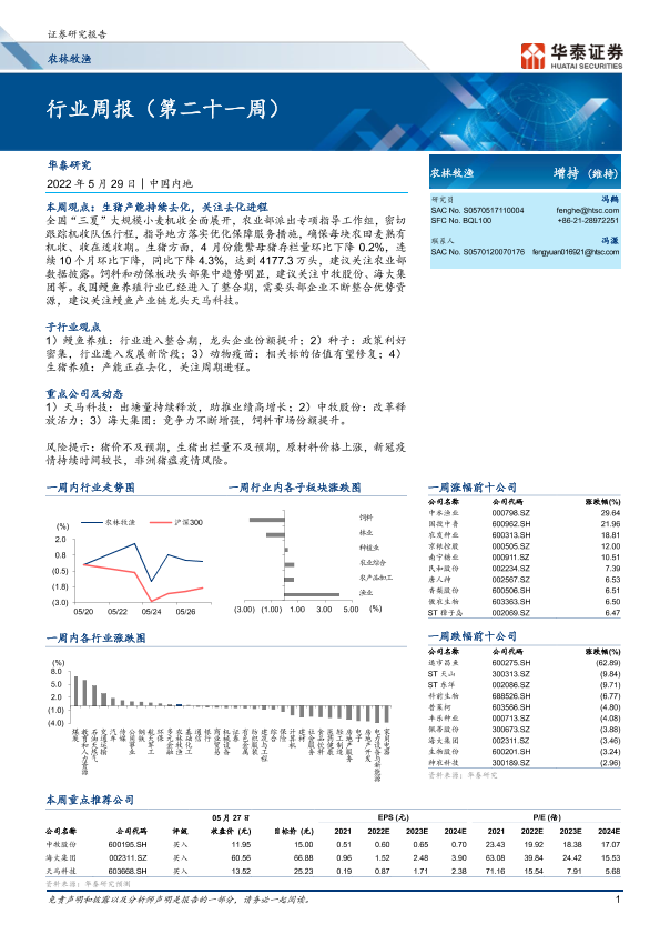【华泰证券】【20220529】20220529-华泰证券-农林牧渔行业周报(第二十一周)-19页