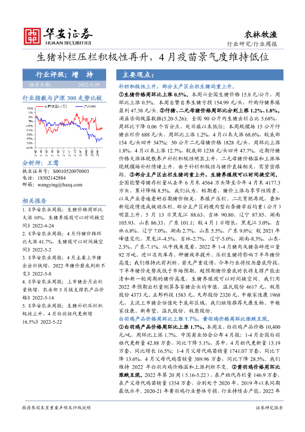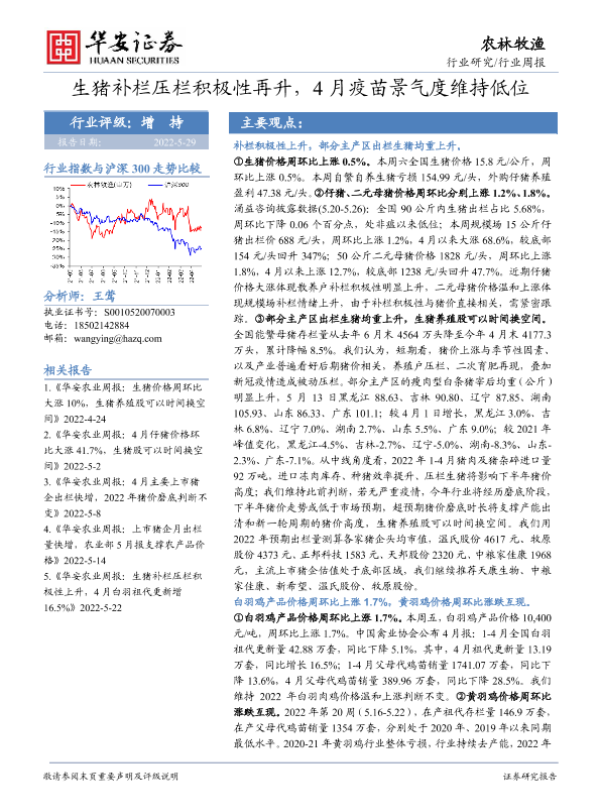 【华安证券】【20220529】20220529-华安证券-农林牧渔行业周报:生猪补栏压栏积极性再升,4月疫苗景气度维持低位-44页