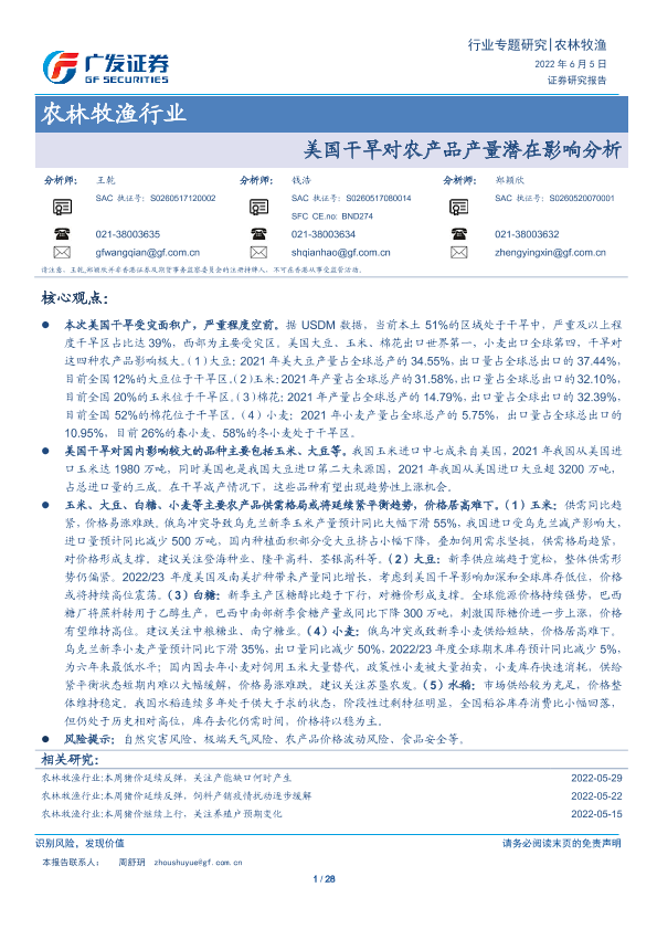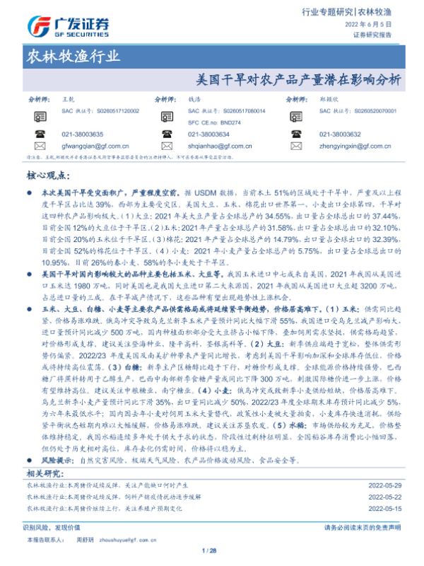 【广发证券】【20220605】美国干旱对农产品产量潜在影响分析-28页