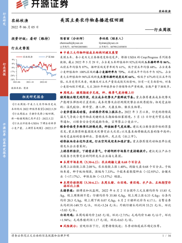 【开源证券】【20220605】农林牧渔行业周报:美国主要农作物春播进程回顾-16页