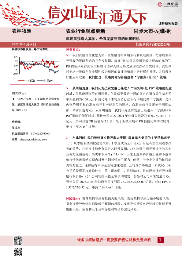 【山西证券】【20220606】农业行业观点更新:建议重视海大集团、圣农发展当前的配置时机-7页