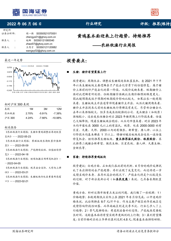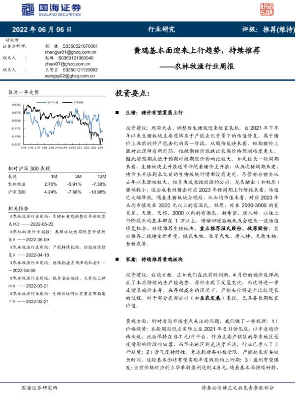 【国海证券】【20220606】20220606-国海证券-农林牧渔行业周报:黄鸡基本面迎来上行趋势,持续推荐-20页