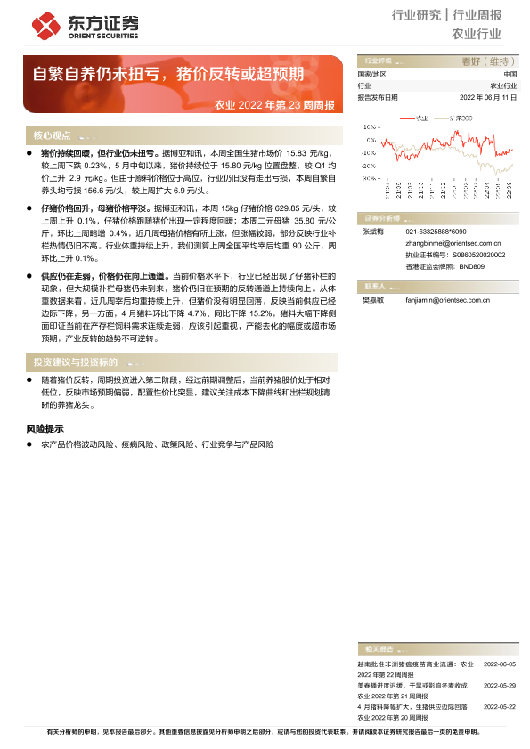 【东方证券】【20220611】农业2022年第23周周报:自繁自养仍未扭亏,猪价反转或超预期-8页