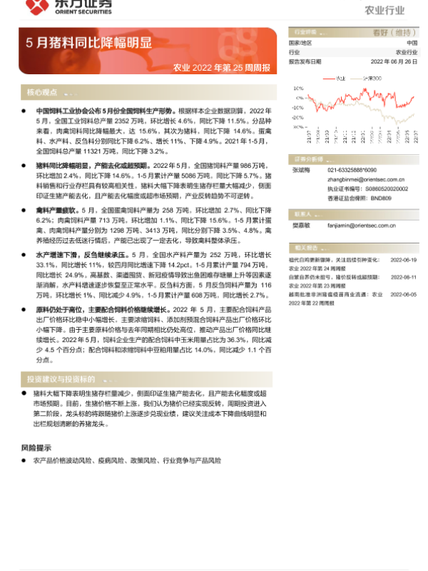 【东方证券】【20220626】农业2022年第25周周报:5月猪料同比降幅明显-9页