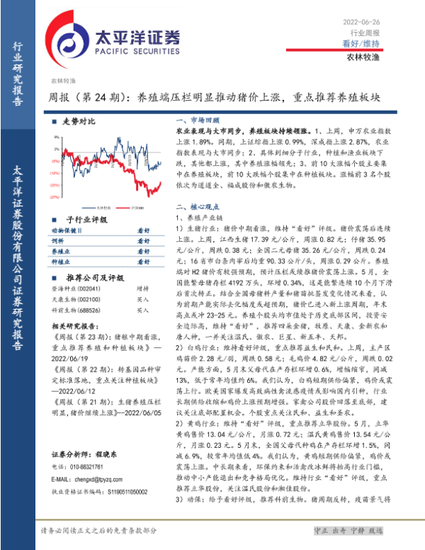 【太平洋证券】【20220626】20220626-太平洋-农林牧渔周报(第24期):养殖端压栏明显推动猪价上涨,重点推荐养殖板块-17页