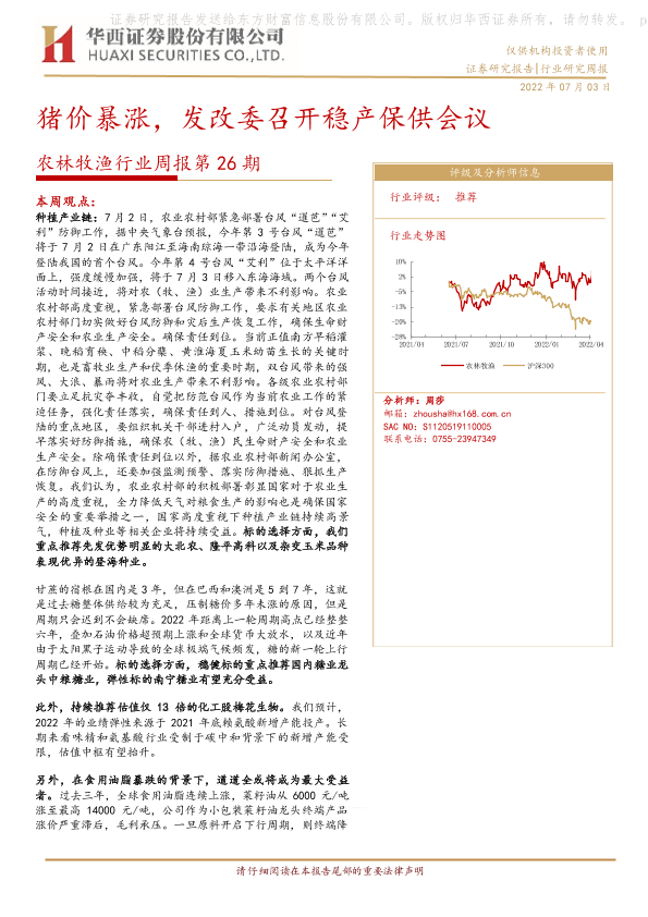 【华西证券】【20220703】农林牧渔行业周报第26期:猪价暴涨,发改委召开稳产保供会议-24页