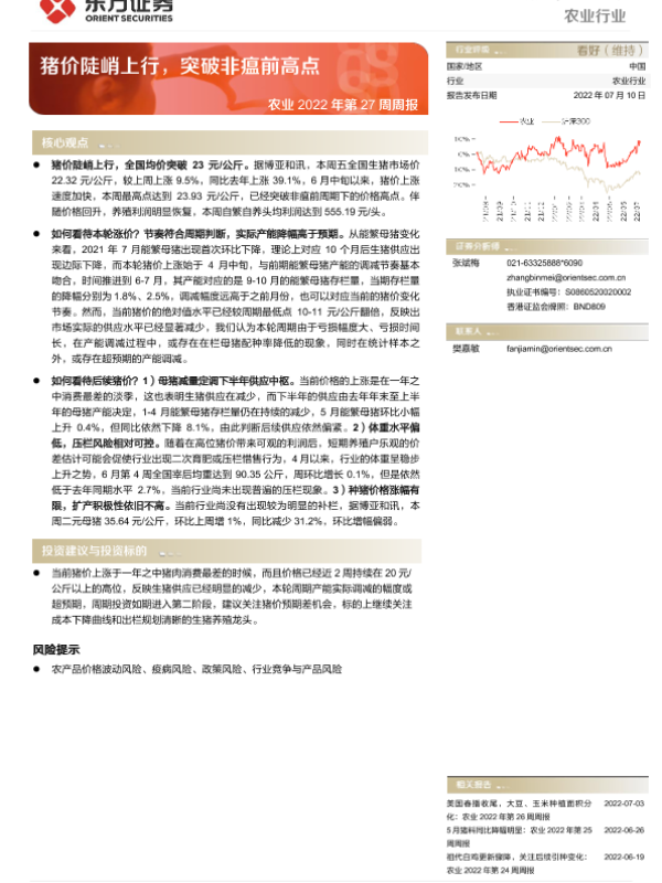 【东方证券】【20220710】农业2022年第27周周报:猪价陡峭上行,突破非瘟前高点-8页