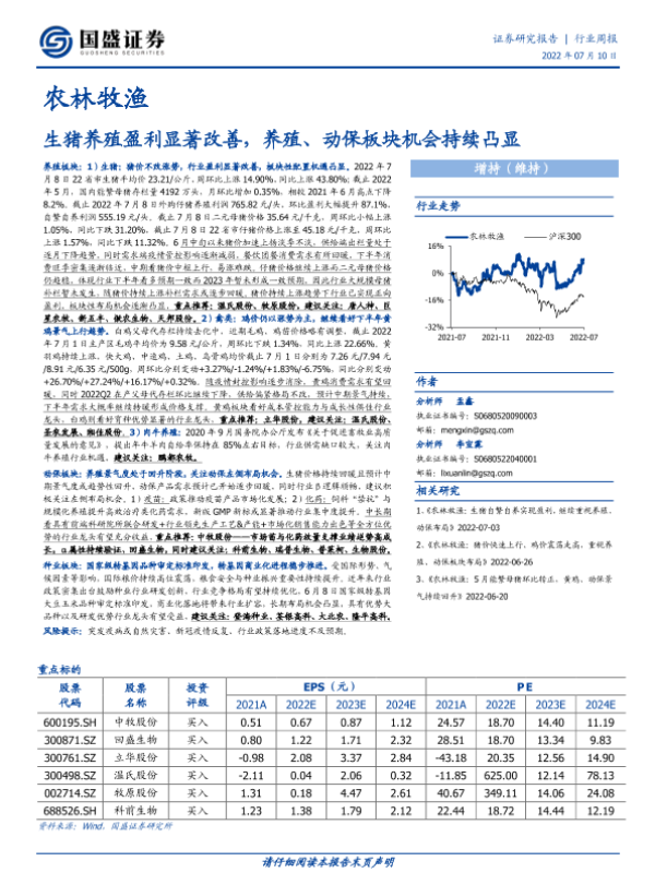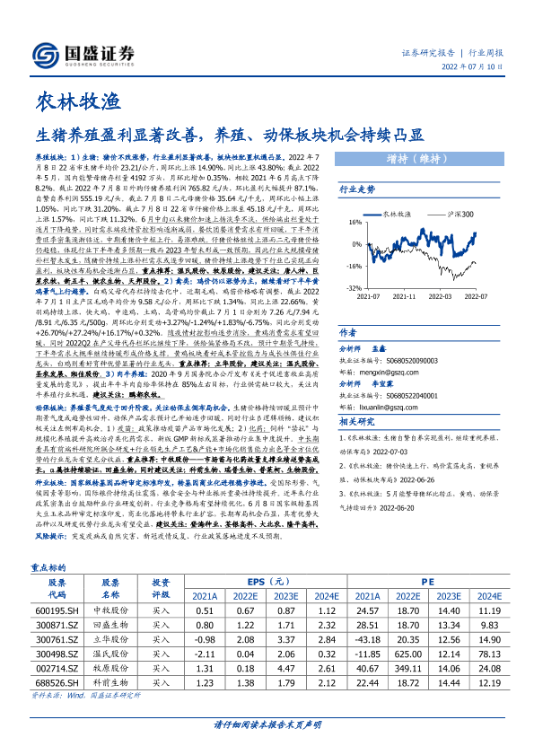 【国盛证券】【20220710】20220710-国盛证券-农林牧渔行业周报:生猪养殖盈利显著改善,养殖、动保板块机会持续凸显-17页