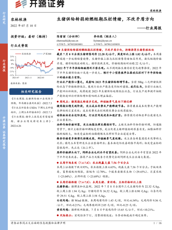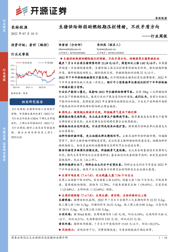 【开源证券】【20220710】20220710-开源证券-农林牧渔行业周报:生猪供给转弱助燃短期压栏情绪,不改矛盾方向-16页