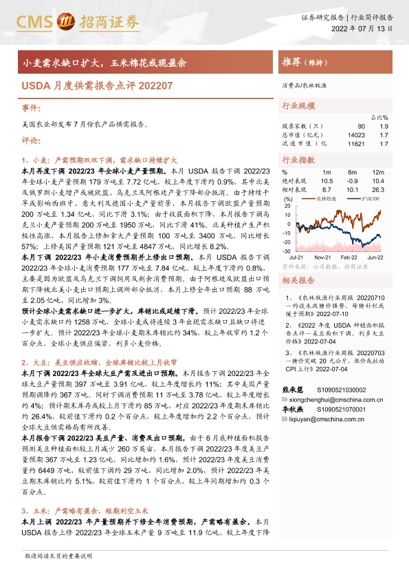 【海通证券】【20220713】农林牧渔:USDA月度供需报告点评-5页