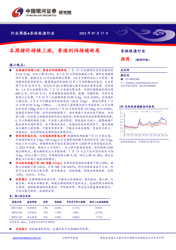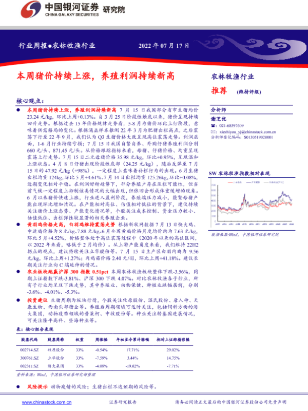 【银河证券】【20220717】20220717-中国银河-农林牧渔行业周报:本周猪价持续上涨,养殖利润持续新高-19页