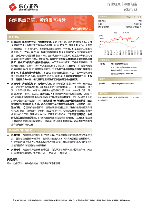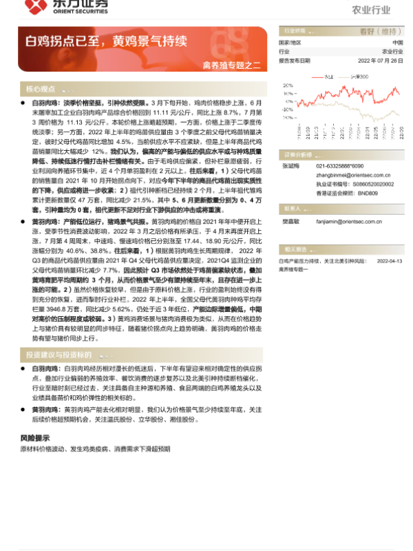 【东方证券】【20220726】20220726-东方证券-禽养殖专题之二:白鸡拐点已至,黄鸡景气持续-13页