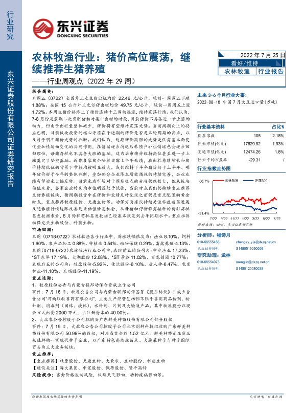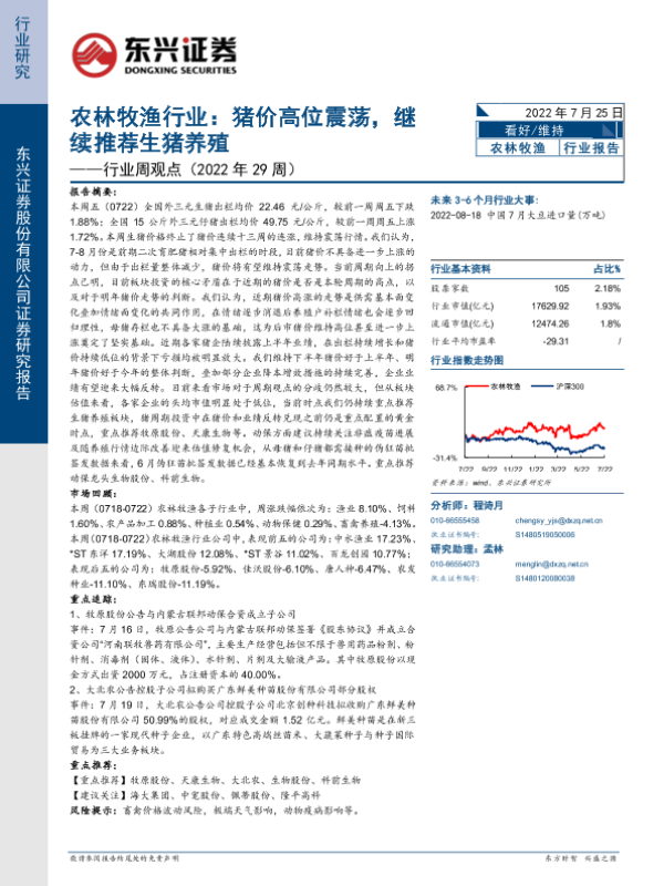 【东兴证券】【20220725】农林牧渔行业周观点(2022年29周):猪价高位震荡,继续推荐生猪养殖-14页