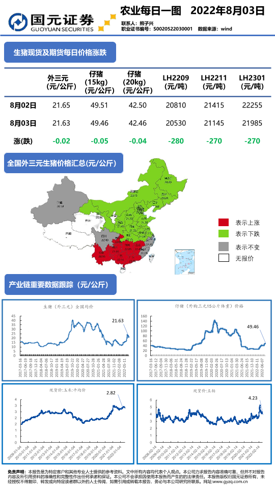 农业数据 农产品 市场价格 期货价格 生猪价格