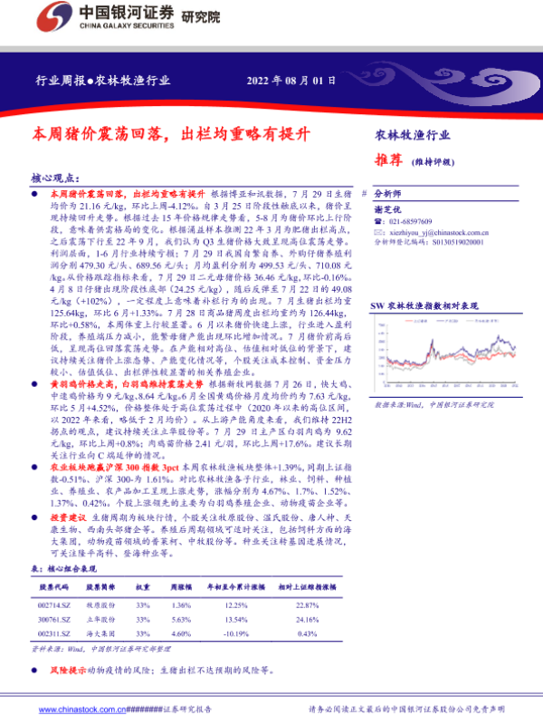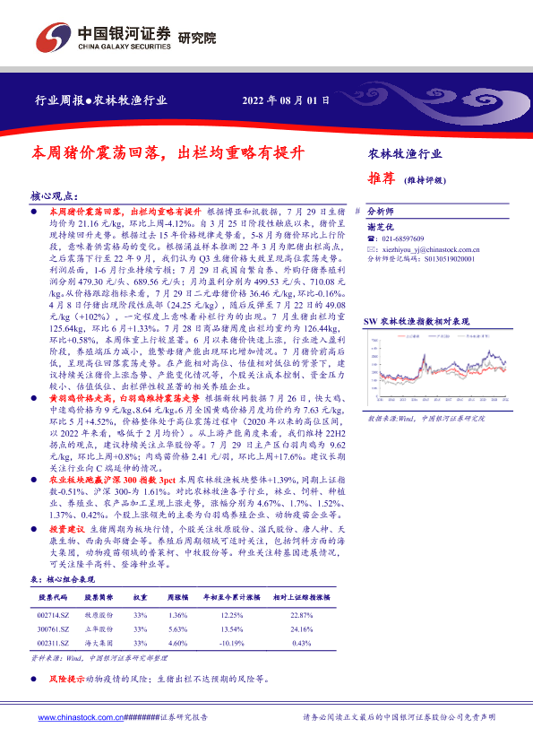 【银河证券】【20220801】20220801-中国银河-农林牧渔行业周报:本周猪价震荡回落,出栏均重略有提升-19页