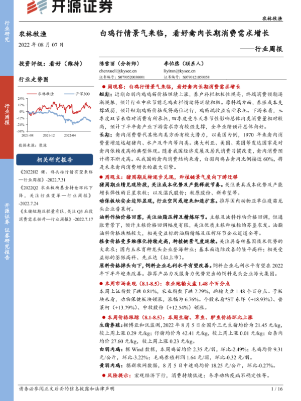 【开源证券】【20220807】20220807-开源证券-农林牧渔行业周报:白鸡行情景气来临,看好禽肉长期消费需求增长-16页