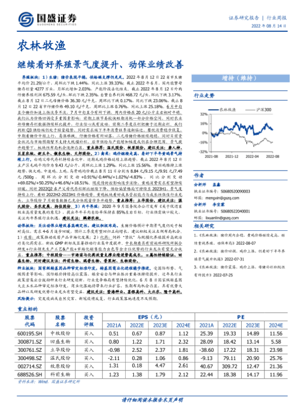 【国盛证券】【20220814】20220814-国盛证券-农林牧渔行业周报:继续看好养殖景气度提升、动保业绩改善-17页
