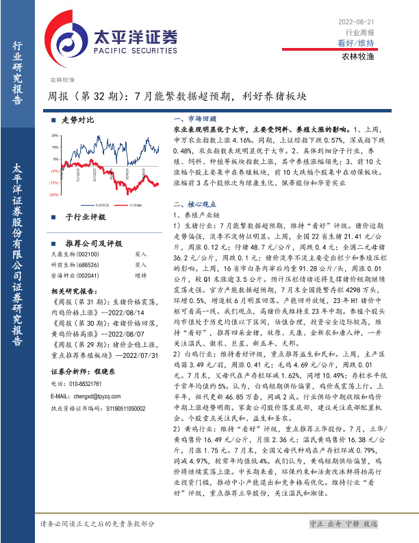 【太平洋证券】【20220821】农林牧渔周报(第32期):7月能繁数据超预期,利好养猪板块-16页